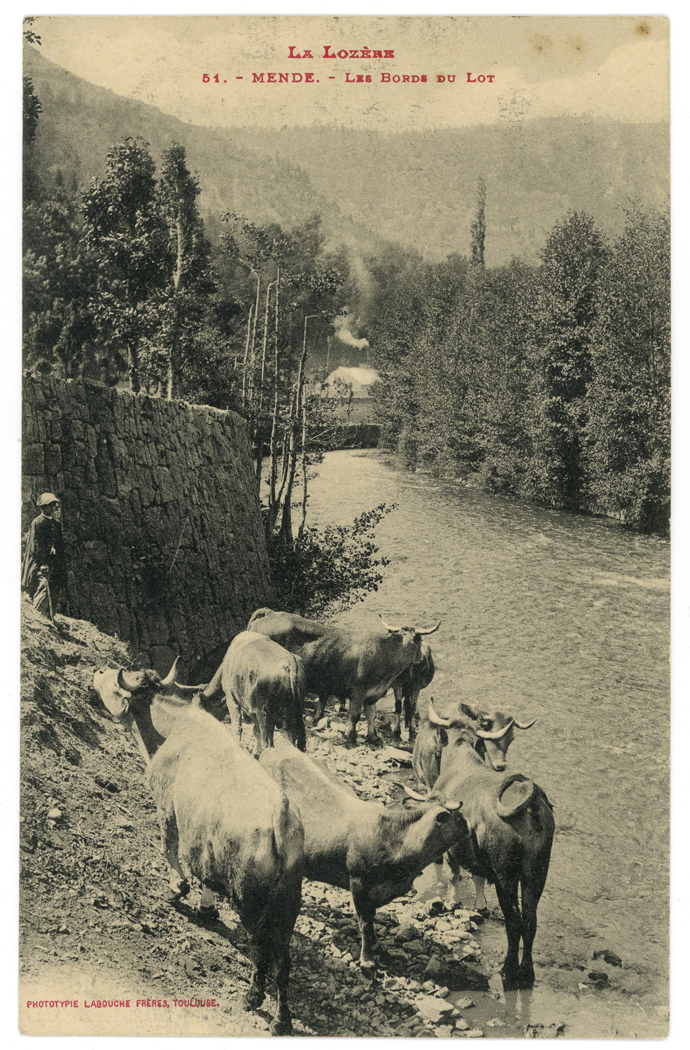 Les bords du Lot, 2017 et cate postale, Mende