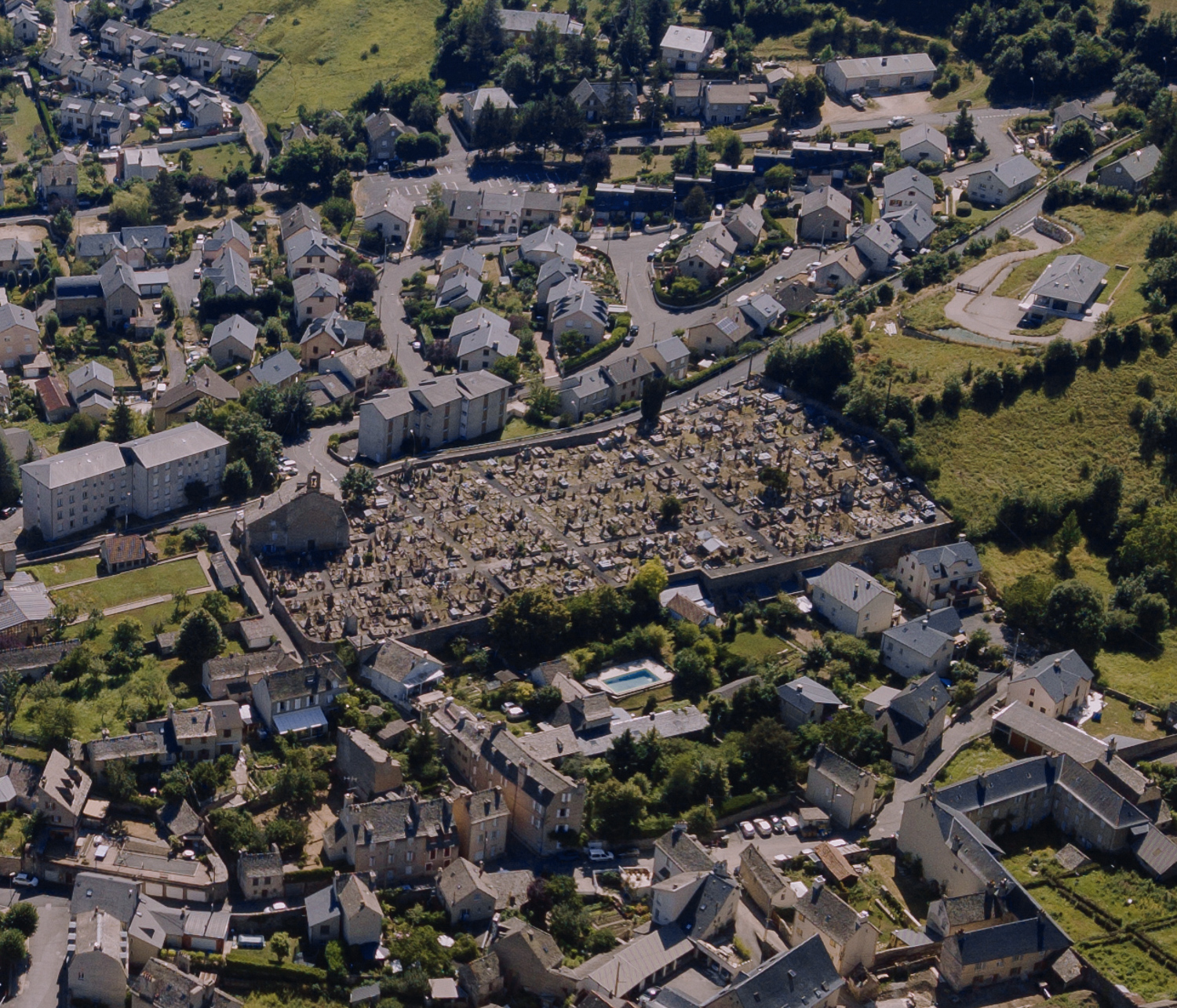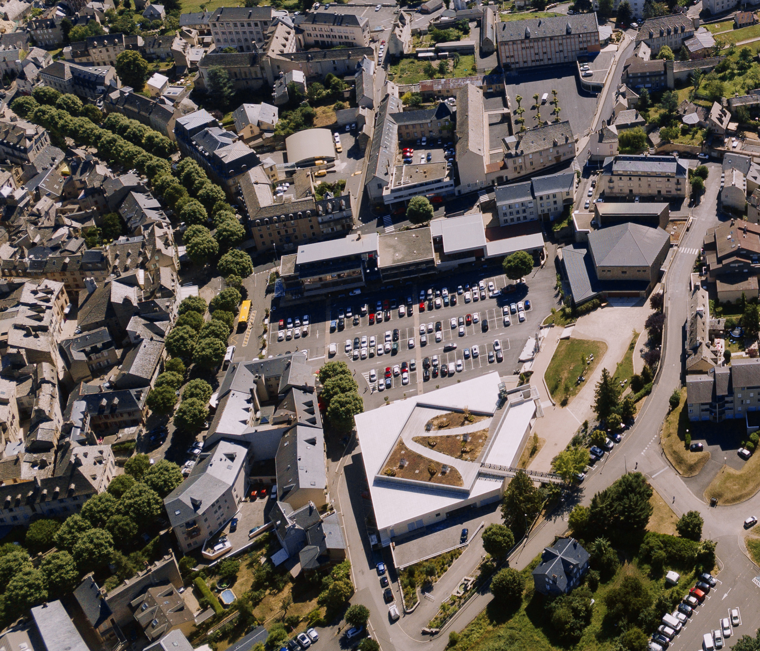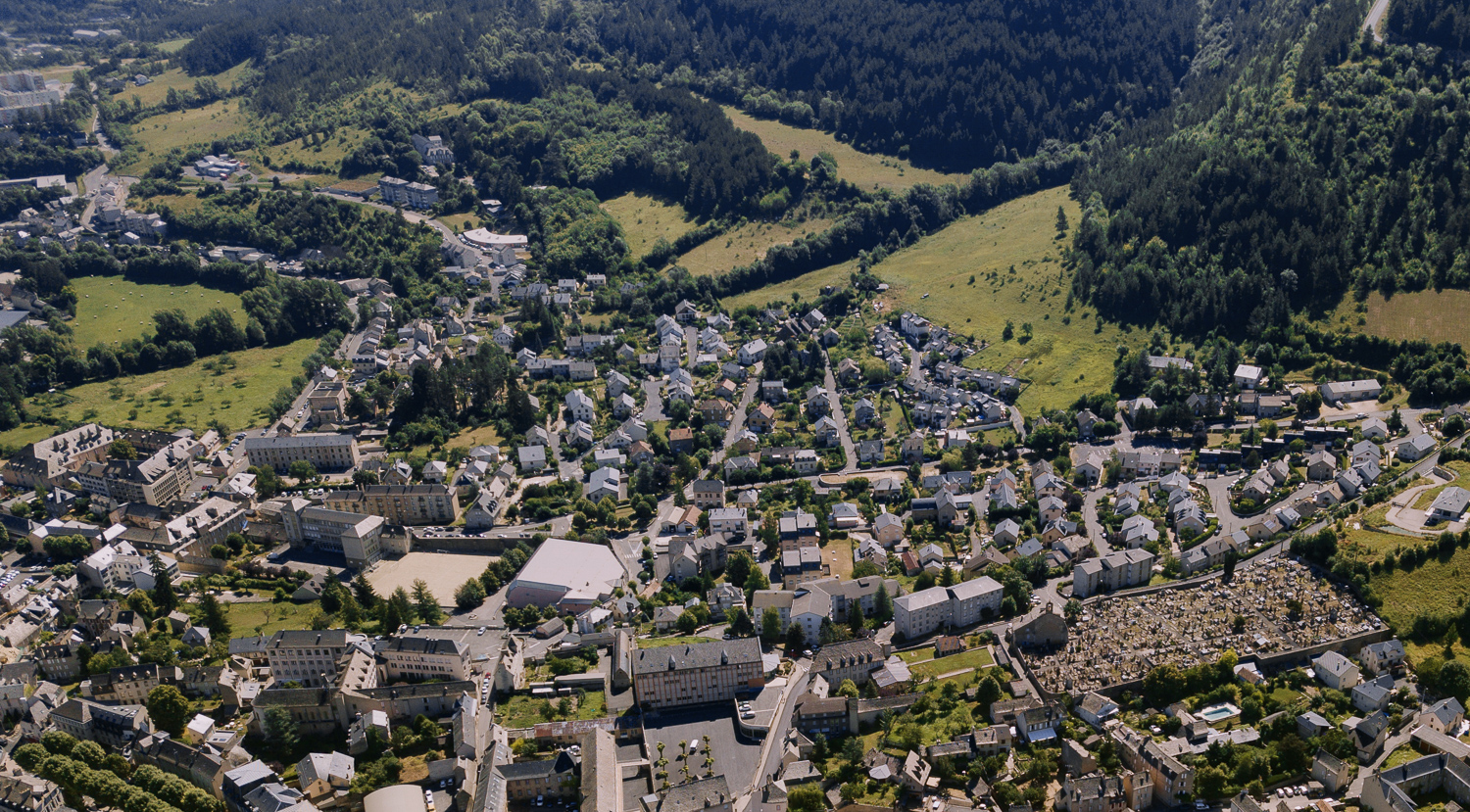 Mende sud. 1, vue d’ensemble, 2, vue sur le quartier du Torrent, 3, cimetière de Saint-Privat, 4, quartier de l’Ermitage de la Vabre, 5, vue élargie du Foirail. 2018