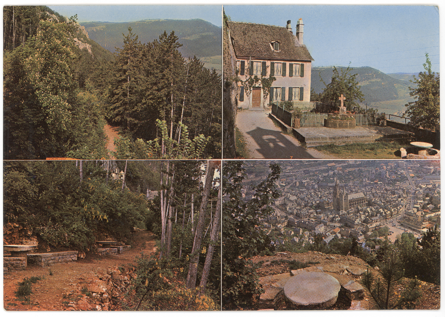 carte postale, ermitage de Saint Privat, chemin, vue plongeante sur l’armittage, vieilles rables de pierre, vue sur Mende, éditions d’art de Toulouse