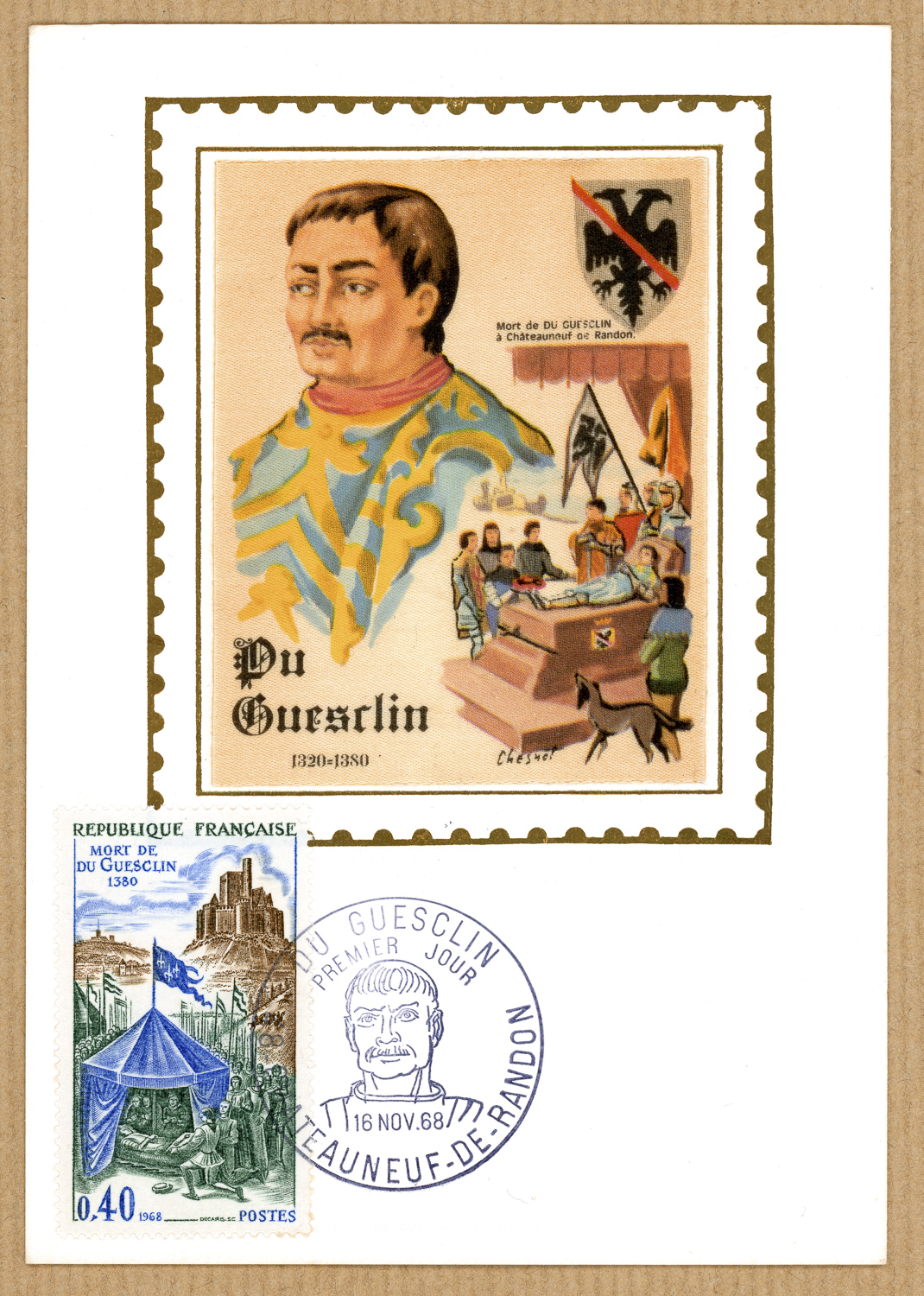 n°1578, Du Guesclin, 1320-1380, soie, carte datée du 16 novembre 1968, Chateauneuf de Randon, lozère