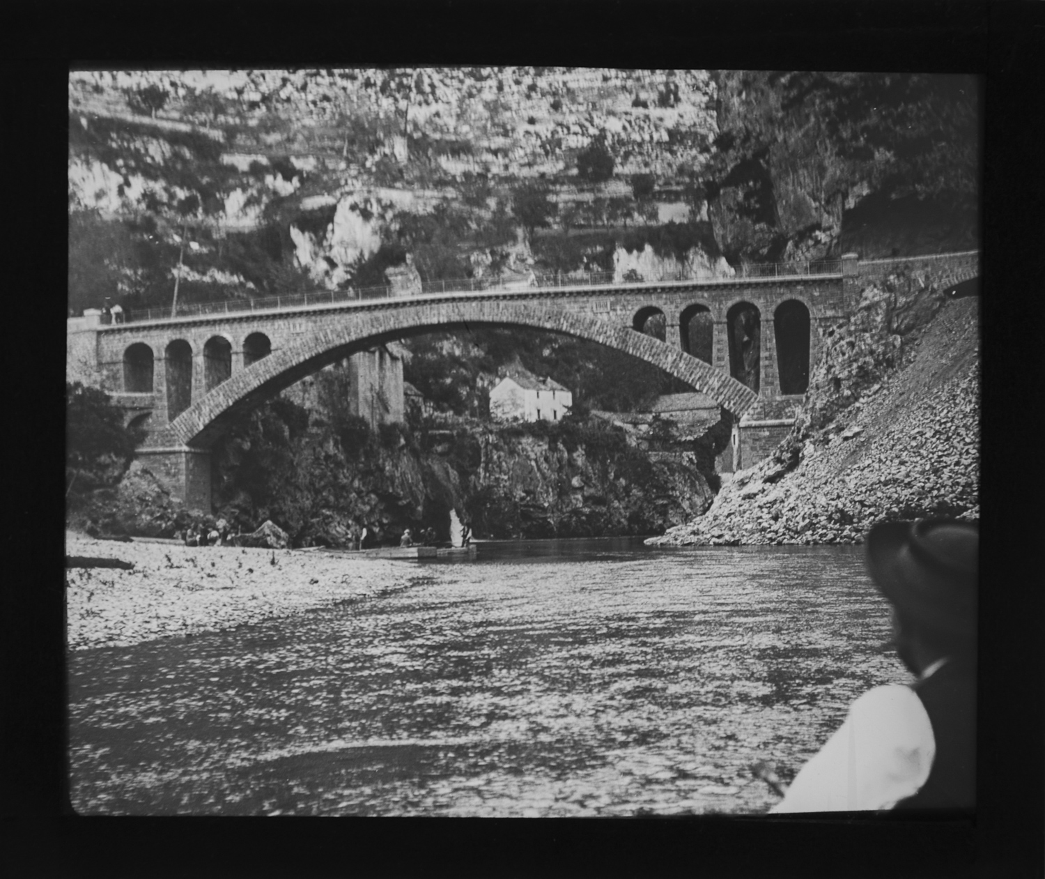 plaque de verre positive, format 83x95, Saint-Chely-du-Tarn, le pont, lozère
