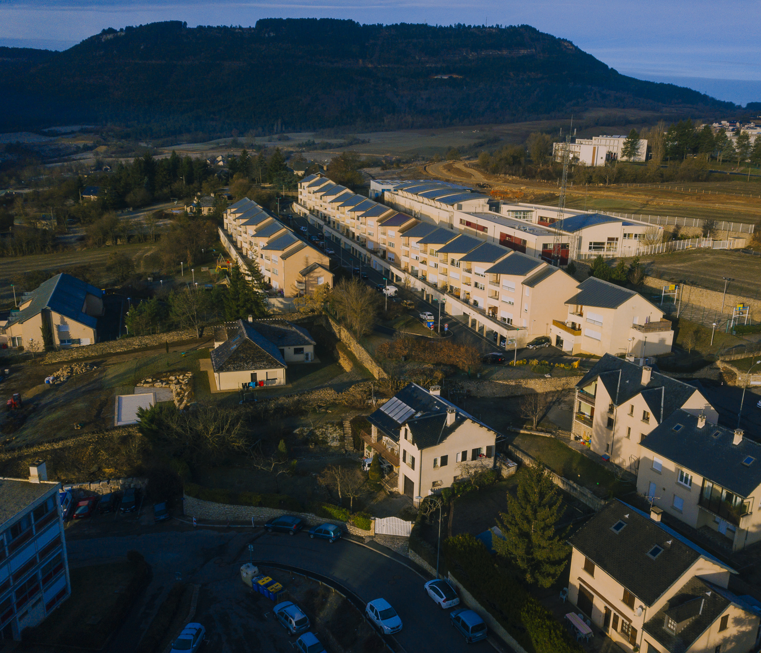 Gendarmerie au premier plan, causse de Changefège au dernier plan, 2018
